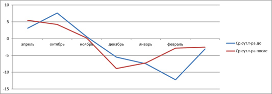 График средних температур в г. Москва 20-21 и 21-22 гг.